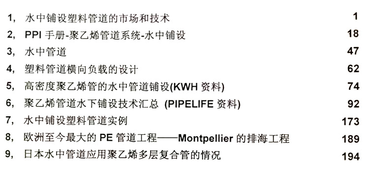 本匯編中‘水中鋪設塑料管道的市場和技術’ 一文是一篇綜述。重點在介紹和分析水中鋪設塑料管道的市場需求和發展動向。