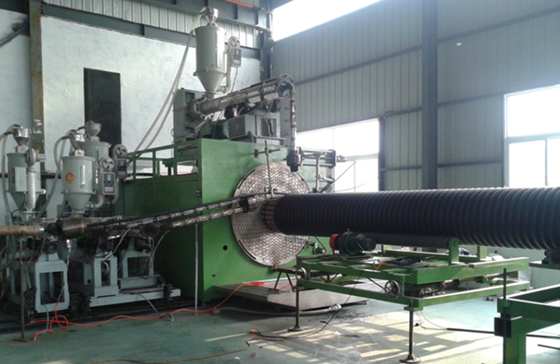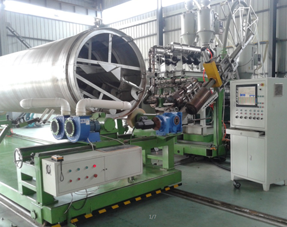 3)成套設備生產規格DN200~DN1200,生產線不僅可以使用原料生產管材,而且也可以完全使用100%再生料生產管材,使其生產的產品適應不同市場需求。