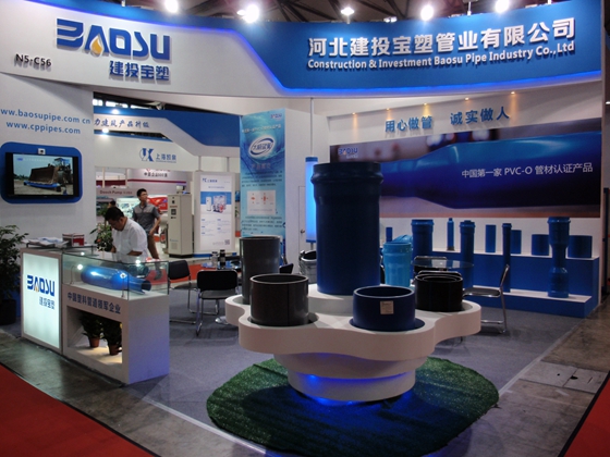 去年九月,河北建投寶塑管業(yè)有限公司在2015第五屆上海國際城鎮(zhèn)及建筑給排水水處理展覽會上隆重推出了太極藍管(PVC-O)。以太極藍為主色調的河北建投寶塑管業(yè)有限公司展位成為了當次水展的亮點之一。太極藍管(PVC-O)當之無愧成為水展的主角,精美的產(chǎn)品,具有震憾視覺沖擊的視頻,讓來自全國各地的水司、設計院和管道經(jīng)銷商紛紛前來咨詢和參觀。
