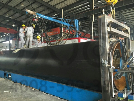 天津市洪浩保溫管有限公司受黑龍江龍電電力設備有限公司委托生產DN1400預制直埋保溫管。其外護管尺寸為¢1680×20,為國內已知尺寸口徑、厚度的聚乙烯外護管。