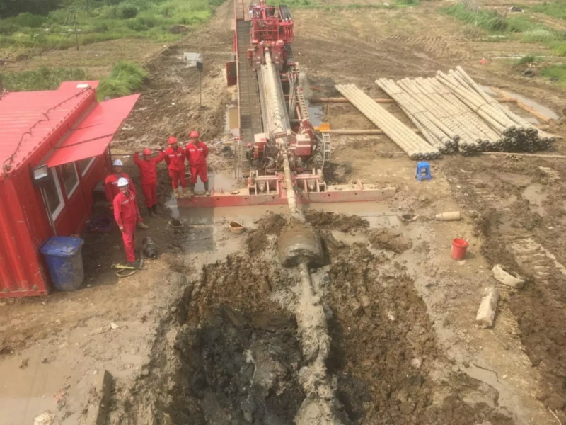 友聯村定向鉆為公司標段內的第十項定向鉆,穿越長度480米,管徑813mm,是繼2018年4月4日囡囡蕩定向鉆完工后的又一項工程。在本項工程中,為了進一步控制成本,挖潛增效,項目管理團隊用“閃電戰”的組織理念,精簡資源,精確施工,把設備再次壓縮30%以上,黑白兩班施工人員控制在16人以內,由過去的一崗雙人轉變為一崗一人甚至一人多崗,把施工資源控制在合理區間內。在工藝上,繼續沿用已經成熟的“裸”擴孔+大級差擴孔工藝,從導向孔開鉆到完工管道回拖,僅歷時64小時,“閃電戰”湊效。