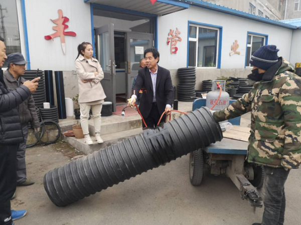2019年11月12日,在青島華仕達機器股份有限公司所在地的青島,還是秋意正濃,但在客戶吉林惠豐管業(yè)的長白山工地,已經(jīng)開始雪花飄灑,馬上要進入冬天的嚴寒季節(jié)了。