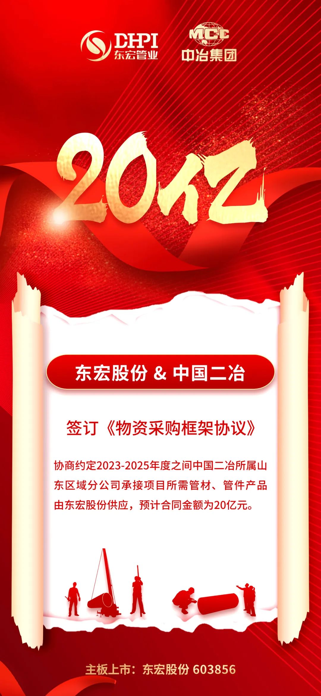 簽約20億!東宏股份與中國二冶集團有限公司簽訂物質采購框架協議