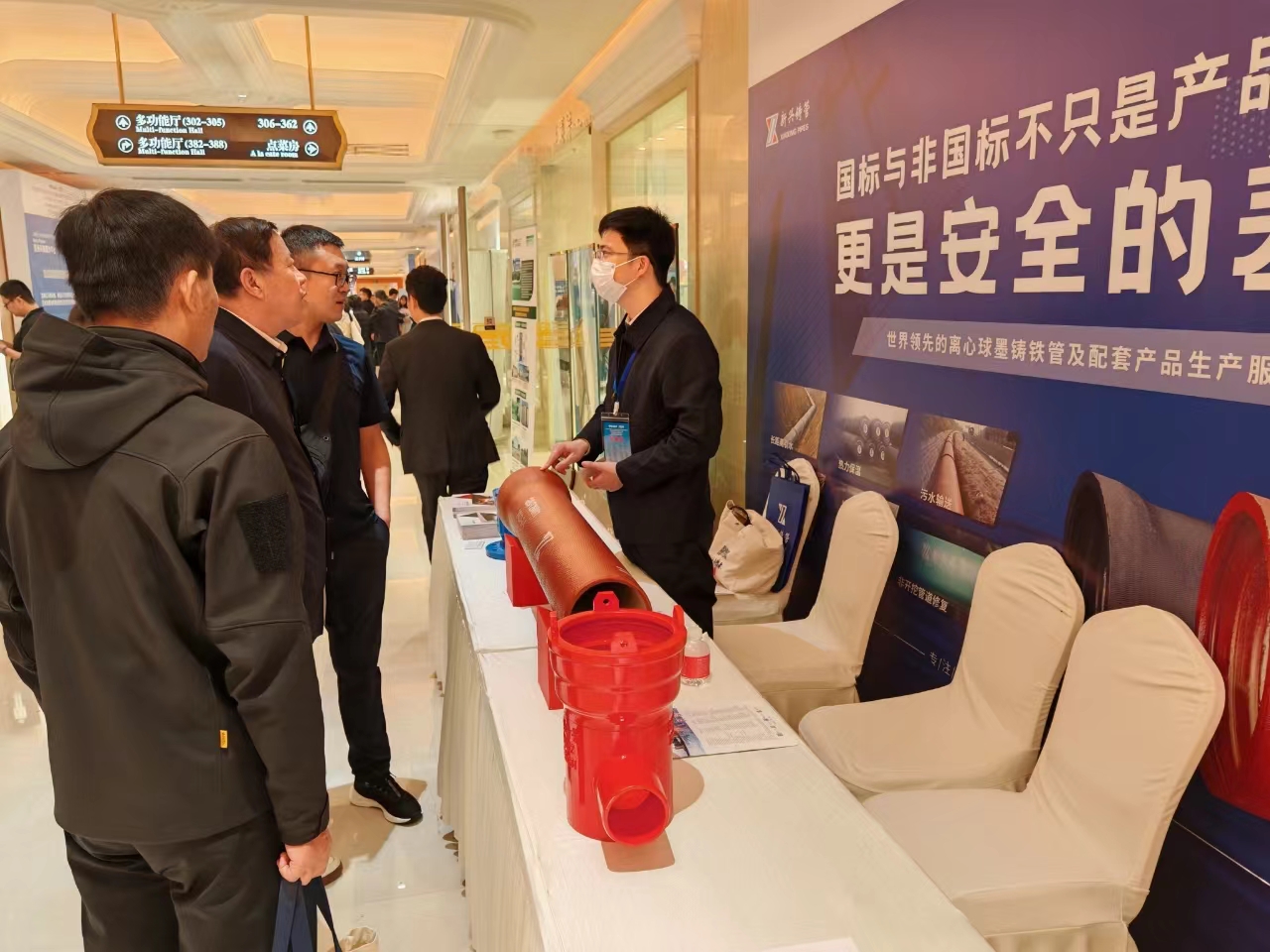 在本次會(huì)議上,公司展臺(tái)重點(diǎn)展示了球墨鑄鐵污水管、檢查井等產(chǎn)品,吸引了眾多與會(huì)代表前來參觀。工作人員向行業(yè)專家及客戶詳細(xì)介紹了球墨鑄鐵污水管和檢查井的應(yīng)用技術(shù)、典型案例工程等,得到了與會(huì)代表的廣泛好評(píng)。