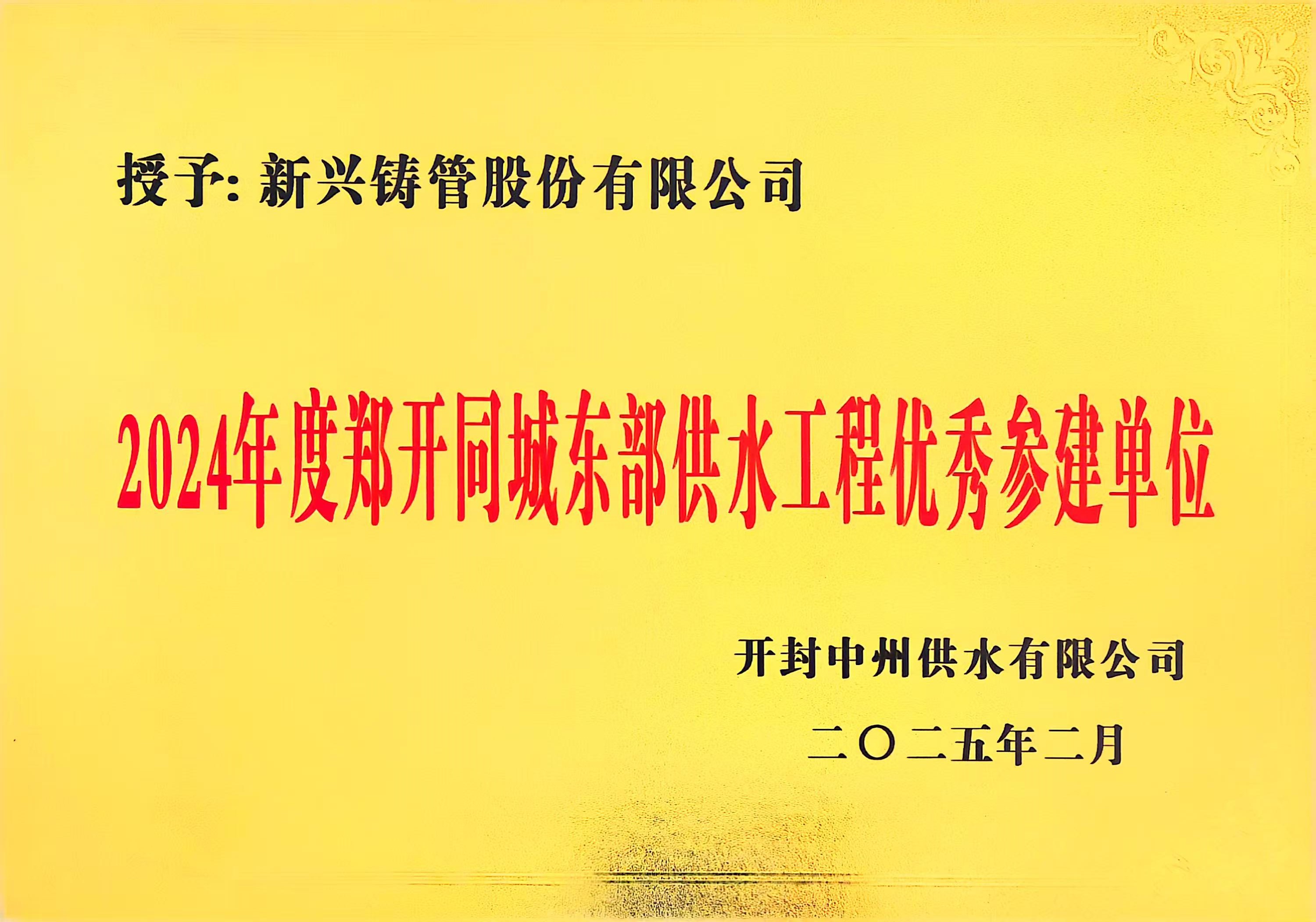 近日,新興鑄管憑借管道技術(shù)的創(chuàng)新,優(yōu)異的產(chǎn)品質(zhì)量和完善的售后服務(wù),為工程的順利進(jìn)行提供了堅(jiān)實(shí)保障,在年度評(píng)選中榮獲2024年度鄭開同城東部供水工程“優(yōu)秀參建單位”。