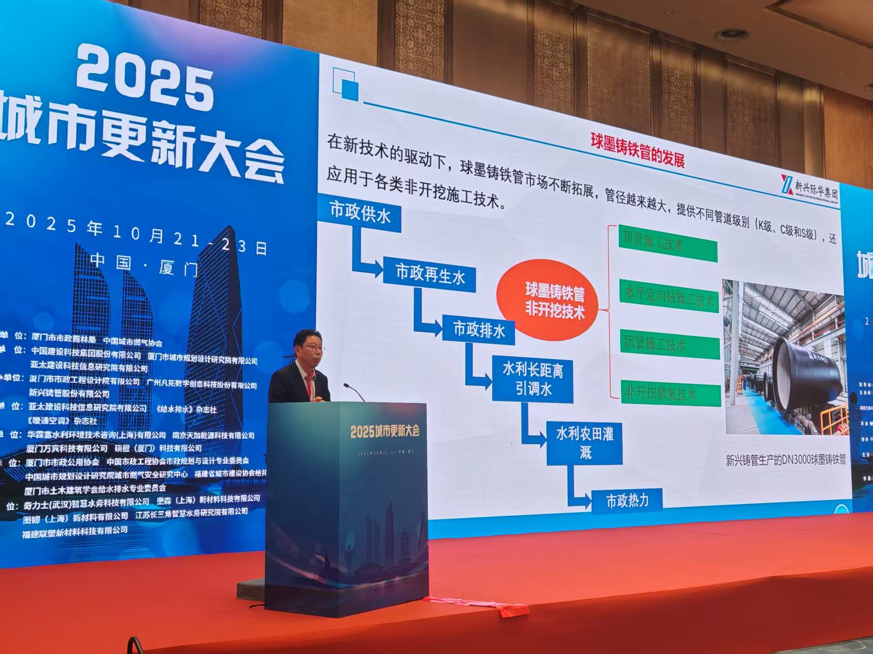 10月21-23日,由中國建設科技集團、廈門市城市規劃設計院共同主辦的“2025城市更新大會”在廈門市隆重召開。作為球墨鑄鐵管行業的龍頭企業與城市管網建設與更新的重要參與者,新興鑄管股份有限公司攜核心技術、標桿案例與創新解決方案亮相大會,深度參與城市更新技術創新研討與實踐經驗交流,為推動城市基礎設施高質量升級注入“新興力量”。