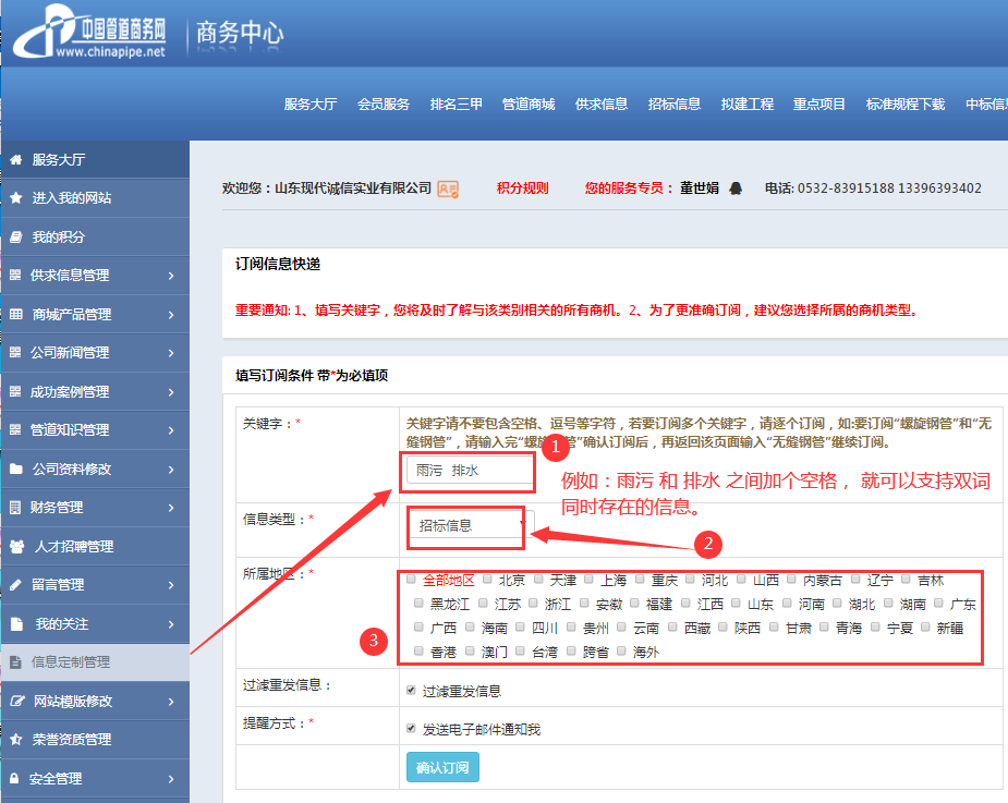 可以定制: 雨污 排水(兩個詞之間加一個空格)即可,這樣收到的信息既包括雨污 也 包括 排水,信息更精準(zhǔn)。