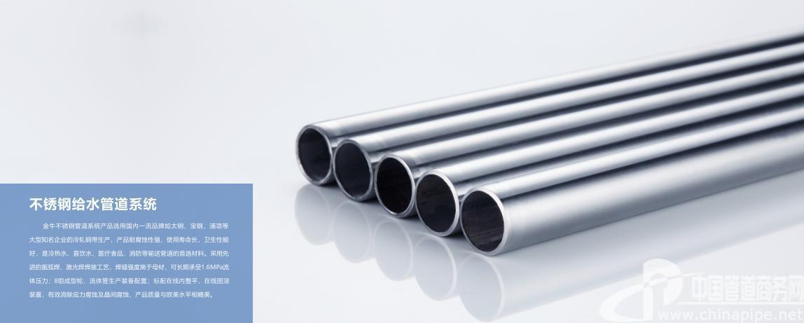 金牛不銹鋼管道系統產品選用國內知名品牌如太鋼、寶鋼、浦項等大型知名企業的冷軋鋼帶生產,產品耐腐蝕性強,使用壽命長,衛生性能好,是冷熱水、直飲水、醫行食品、消防等輸送管道的首造材料,采用先進的氬弧焊、激光焊焊接工藝,焊縫強度高于母材,可長期承受1.6MPa流體壓力;8組成型輪,流體管生產裝備配置;標配在線內整平、在線固溶裝置,有效消除應力腐蝕及晶間腐蝕,產品質量與歐美水平相媲美。