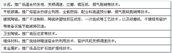 主要內容:在大中型建材企業建立能源管理中心,推進合同能源管理,提升能效水平,最大限度實現能源梯級利用。推廣和應用重點節能技術、設備和產品,提高企業能源利用效率。制訂主要行業能耗標準,在重點行業開展能效對標達標活動,對不達標企業實施節能專項改造。推廣高效減排技術與裝備,重點推進窯爐煙氣二氧化硫、氮氧化物源頭消減,削減大氣污染物排放總量。