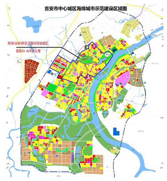 2.協調發展,重點突出。海綿城市建設要與吉安市城市總體規劃、中心城區控制性詳細規劃相協調。合理編制海綿城市專項規劃,在城市規劃的框架下指導海綿城市建設;海綿城市項目建設要與吉安市中心城區未來城市發展的方向和重點緊密結合,特別是與示范區建設緊密結合。