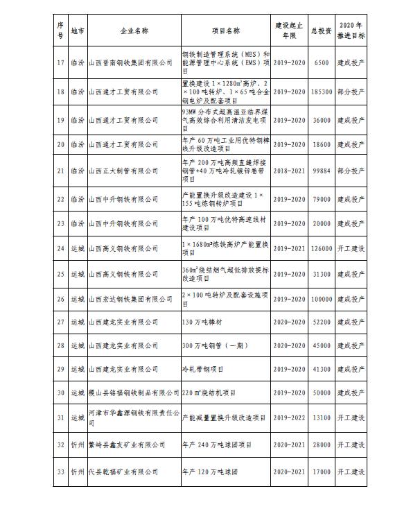 近日,山西省工業和信息化廳發布《山西省鋼鐵產業轉型升級2020年行動計劃》,2020年,山西省重點推進33個升級改造項目,總投資323億元,力爭當年完成投資100億元,全行業實現主營業務收入3000億元。