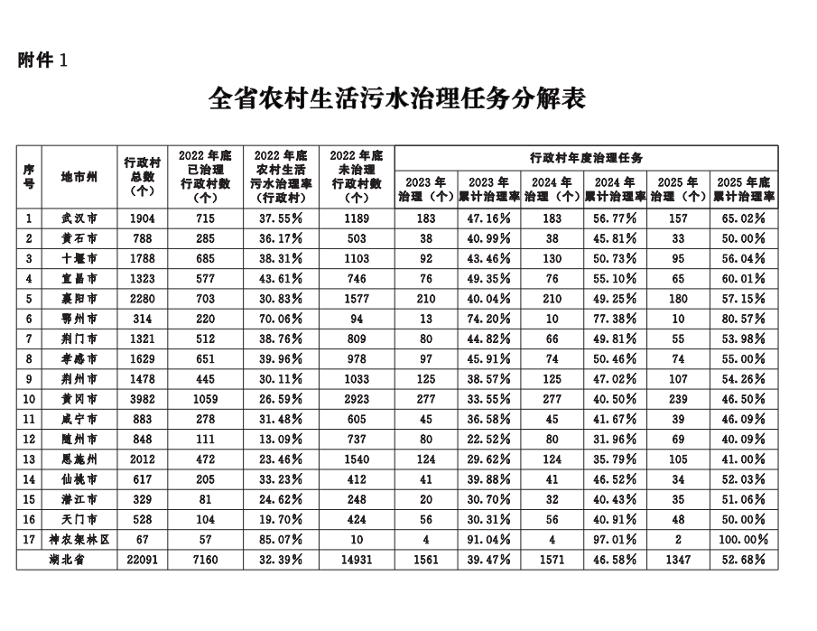 湖北省農村生活污水治理三年行動方案(2023-2025年)