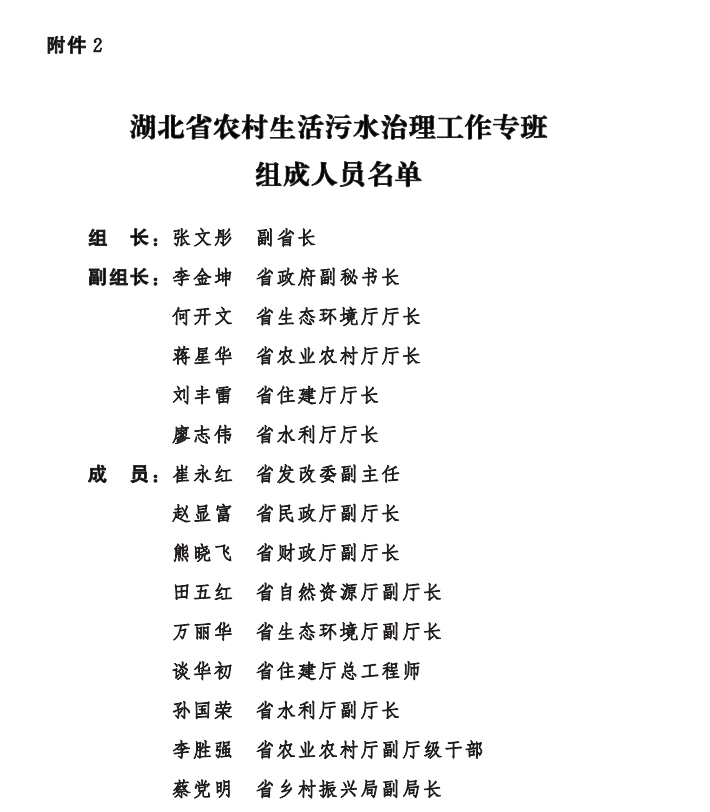 2.湖北省農村生活污水治理工作專班組成人員名單