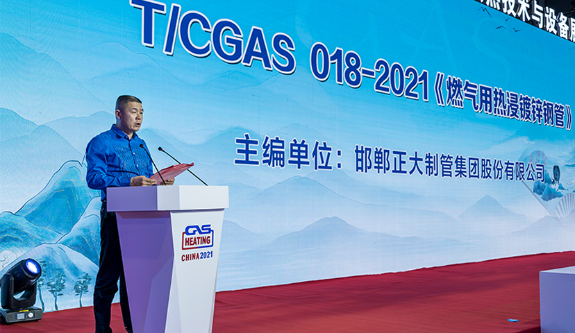 2021年中國城市燃氣協會團體標準發布會于10月27日在杭州國際博覽中心隆重召開。正大制管作為T/CGAS 018-2021編號《燃氣用熱鍍鋅鋼管》團體標準的主編單位,副總裁姜海東出席標準發布會并為參編單位頒發參編證書。